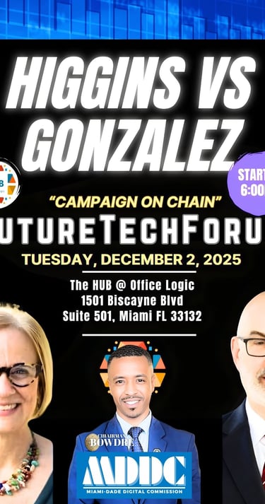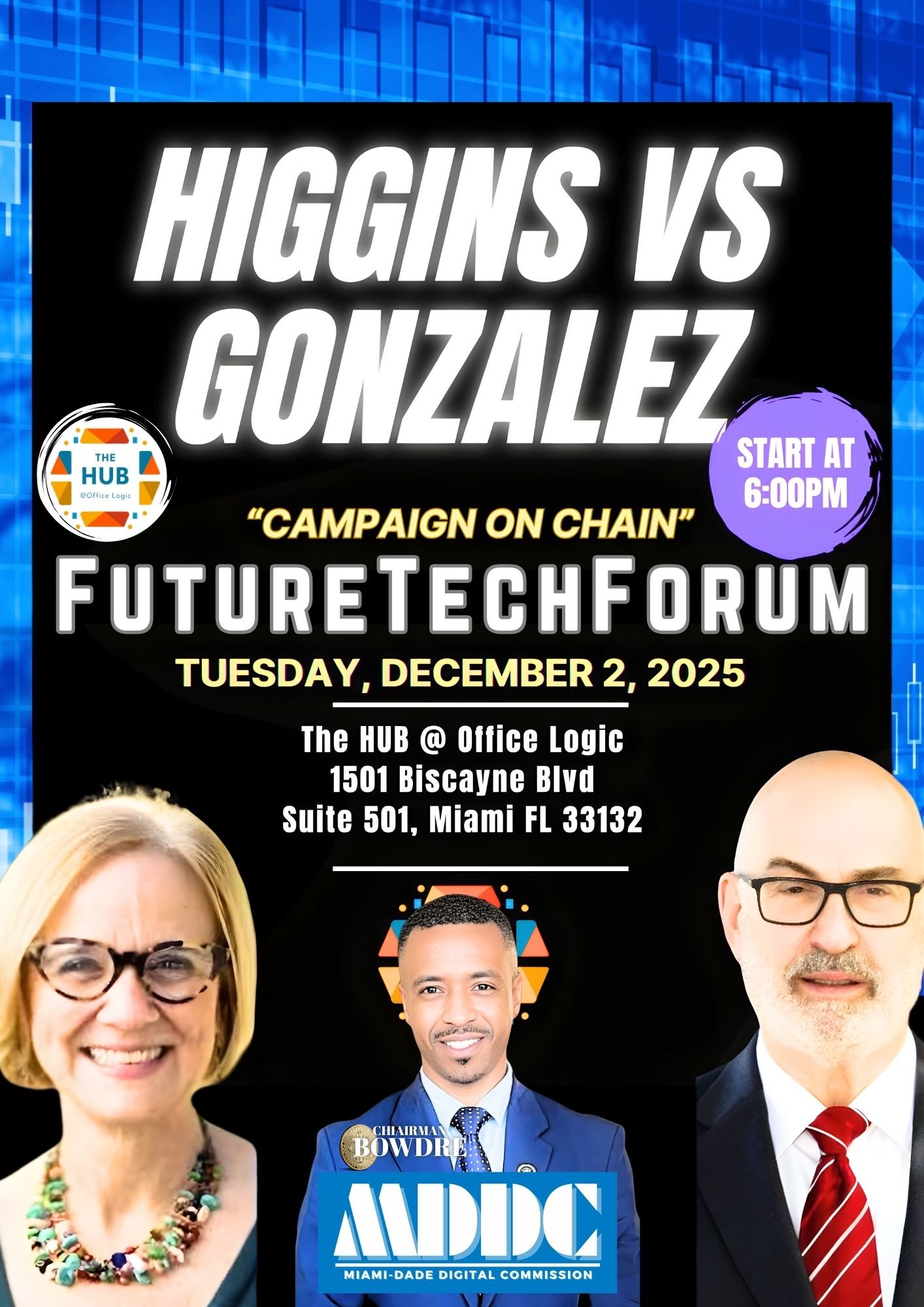 Donāt miss the opportunity to be part of the conversation where tech meets politics! Come through, ask questions, and see who's ready to lead Miami into a new era.
